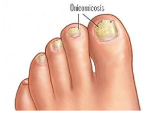 Onicomicosis es el nombre con el que se conoce a la infección de las uñas ocasionada por un hongo. Se produce cuando la uña es expuesta a micro traumatismos, en la mayoría de los casos ocasionado por el uso de zapatos apretados, perdiendo de esta forma las barreras naturales que la protegen contra las infecciones.