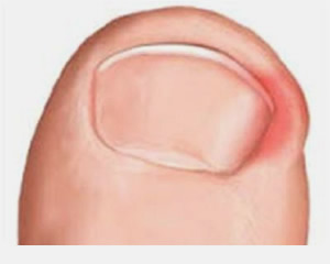 Afecta principalmente al dedo gordo y se caracteriza por dolor punzante, inflamación, secreción de líquido seroso que eventualmente puede transformarse en pus al sobrevenir una infección.