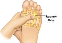 Los nervios del pie pueden sufrir lesiones en áreas expuestas a presión desde afuera o desde adentro del pie. Una de ellas es el Neuroma de Morton. Esta es sumanente dolorosa y se produce al quedar atrapado el nervio localizado entre la cabeza del 3er. y 4to. metatarsianos, usualmente. El dolor es punzante, con adomecmiento de los dedos y sensación de descargas eléctricas. Se alivia al quitarse los zapatos y al estar sentado o acostado.
